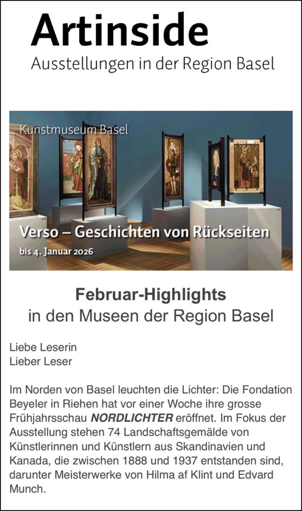 - Hinweise auf Vernissagen, Veranstaltungen und besondere Events in den Museen der Region Basel